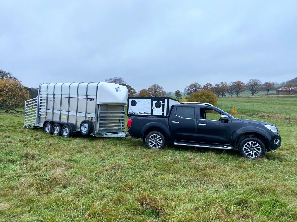 Jag kör det största Ifor William släpet, treaxlad, med en, alternativt två våningar. Total lastvikt ca 2000kg. Genom hela Sverige, både korta och långa resor! Verksamheten startade hösten 2021 och sedan dess har jag haft många spännande transporter, lastat djur fram och tillbaka ute i skärgården, transporterat älgar mellan djurparker, hjortar mellan olika hägn, lockiga grisar, kungens lamm och nöt, vattenbufflar genom halva Sverige och en hel drös avelstjurar mellan besättningar.